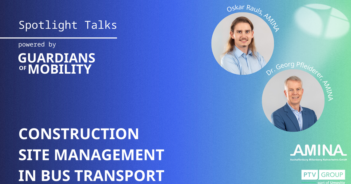 In the webinar, Dr. Georg Pfleiderer and Oskar Rauls (AMINA) report from practical experience: They will show how AMINA has developed innovative solutions with the help of the regional transport model REMOSI and PTV software – from the analysis of large-scale diversions to the planning of a new express bus line. Experience how data-based scenario planning creates transparency, accelerates decisions, and lays the foundation for sustainable public transport.